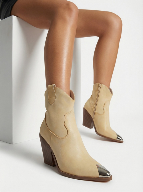 - Kotníkové boty ve stylu kovbojek na podpatku, vyrobené z ekologické kůže. Textilní stélka, zapínání na zip s ozdobnou špičkou. Hodí se k mnoha ženským stylizacím!
