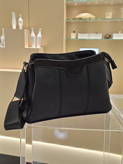 - Malá kabelka vyrobená z kombinace eko kůže a eko semiše. Má 3 komory, 3 kapsičky, zip a nastavitelný popruh. Styl a funkčnost v perfektním provedení.