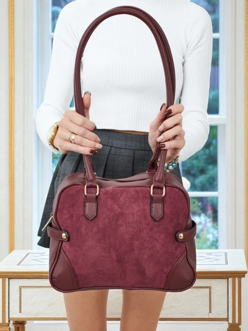 - Elegantní dámská kabelka z eko semišové kůže a vsadkami z ekologické kůže. 1 komora, 4 kapsičky, odnímatelný, nastavitelný popruh. Ideální do práce i pro běžné nošení – prostorná, módní a praktická.