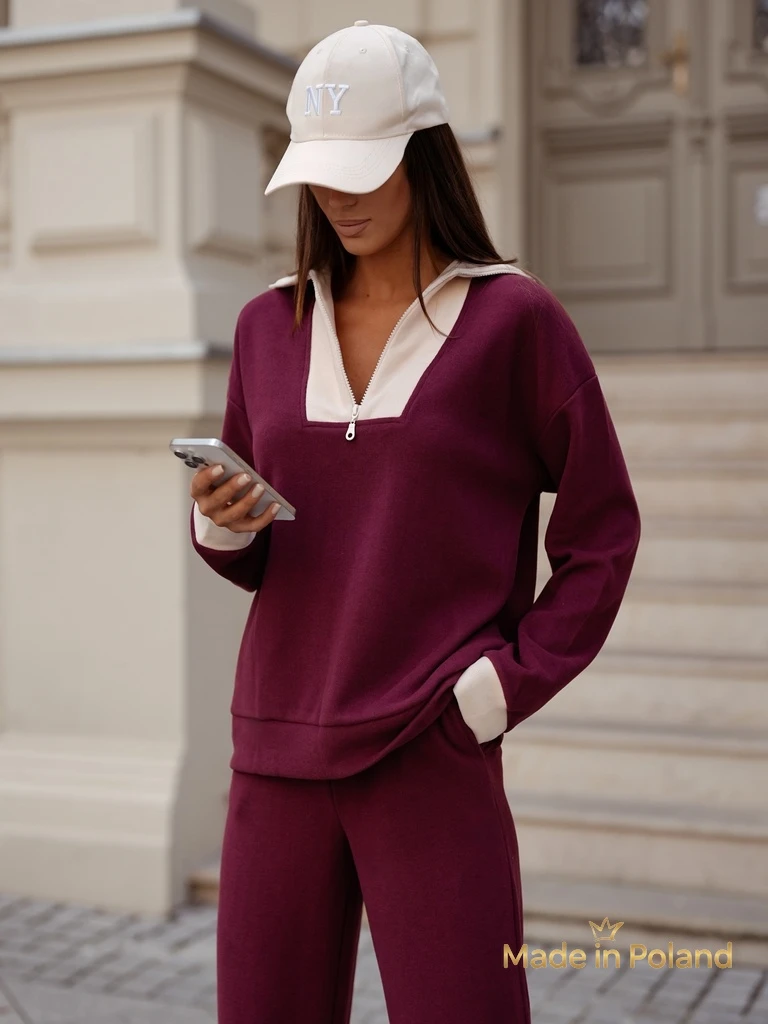 • Dámská pletená souprava z příjemného bavlněného materiálu. Mikina se zipem u výstřihu. Dlouhé kalhoty s gumou v pase a 2 kapsami. Pociťte styl v této nádherné soupravě!