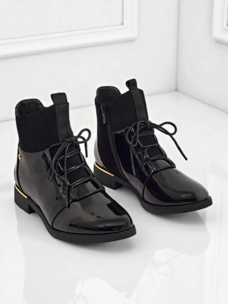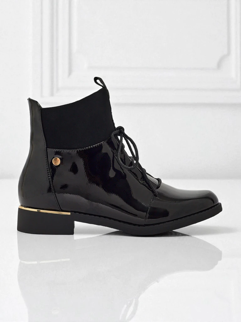 - Elegantní černé kotníkové boty z ekokůže, ideální na jaro a podzim.
