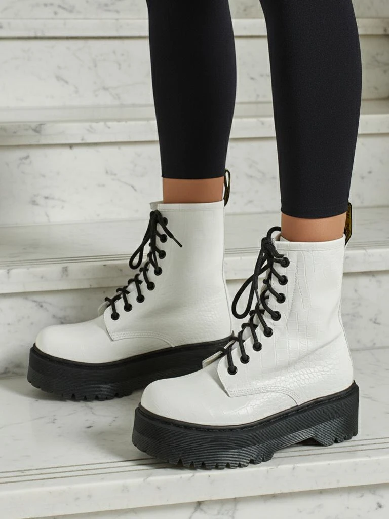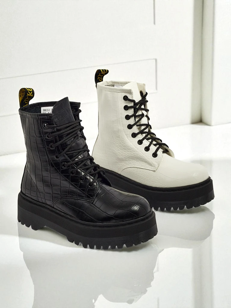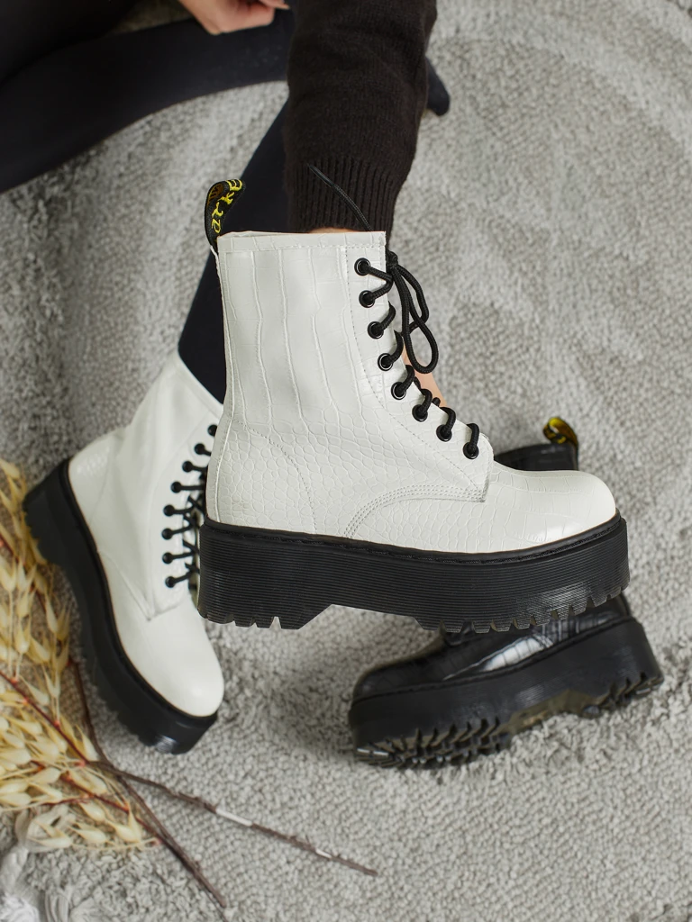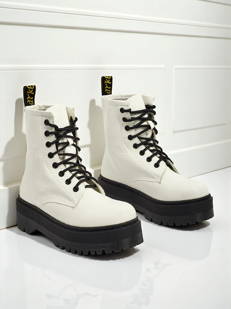 - Vysoké dámské workery z eko kůže, šněrovací. Model na platformě, uvnitř tkanina. Ideální volba pro chladnější období!
