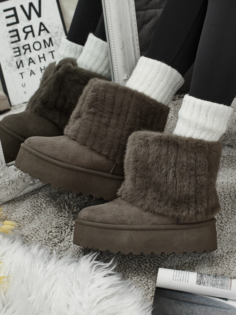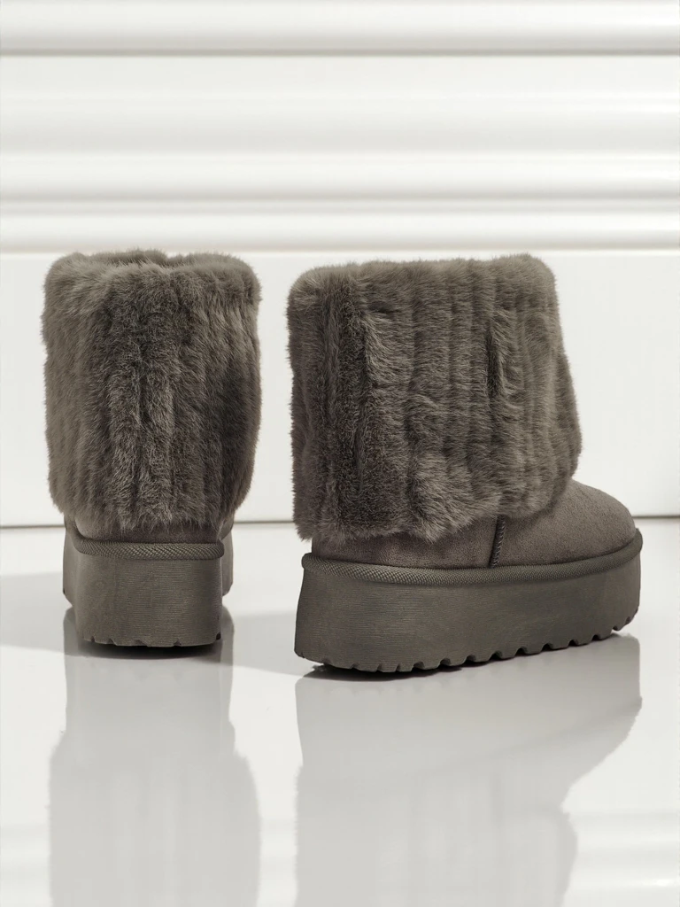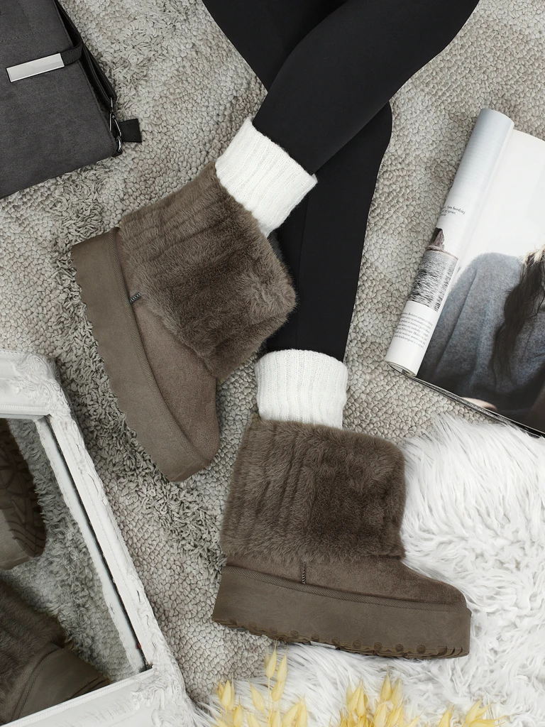 • Skvělé dámské zimní boty typu sněhule na silnější platformě. Svršek je vyroben z ekologické semišové kůže, vnitřek je zateplený kožešinou. Ideální základ pro zimu!