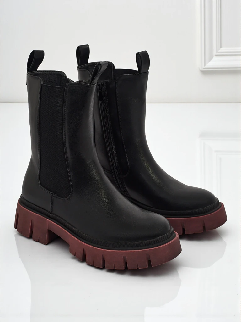 Vyšší dámské kotníkové boty z eko kůže s barevnou podrážkou Dorvella