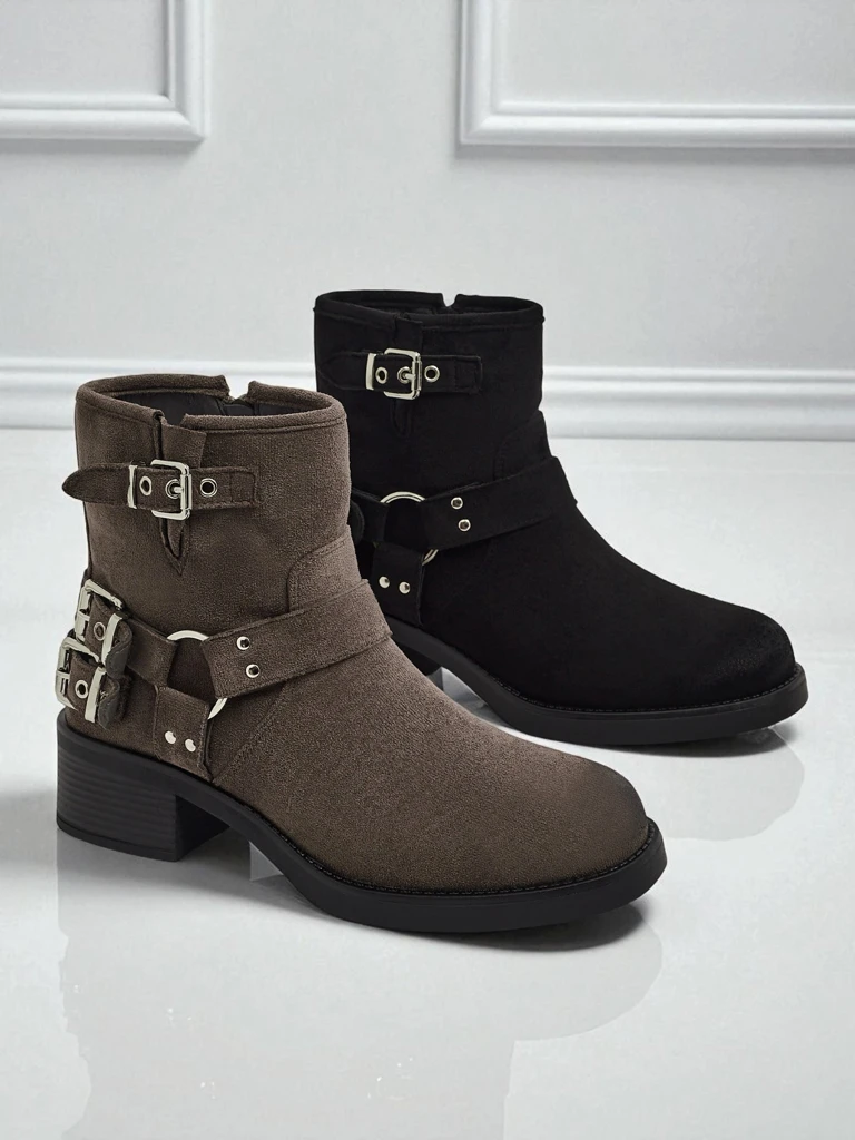 Dámské kotníkové boty z eko semiše s přezkami Valtos