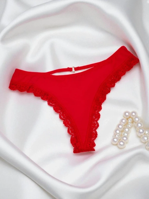 - Jemné dámské krajkové tanga, celé vyrobené z příjemného materiálu. Zdobené zlatým spojením a krajkou. Ideální návrh pro kreace pro zvláštní příležitosti!