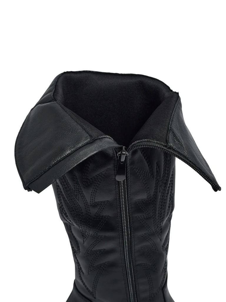 - Kozacky ve stylu kovbojek na podpatku, vyrobené z ekologické semišové kůže. Obuv se zapíná na zip a má textilní výplň. Hodí se k mnoha dámským stylizacím!