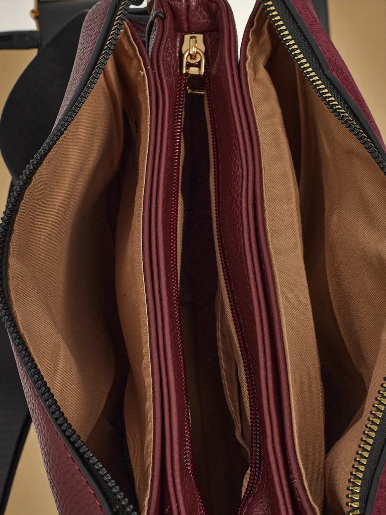 - Malá kabelka vyrobená z kombinace eko kůže a eko semiše. 3 komory, 4 kapsy, zip a nastavitelný popruh. Styl a funkčnost v perfektním provedení.