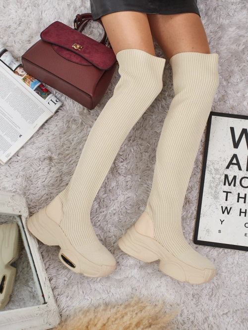 - Stylové dámské kozačky nad koleno na masivní podrážce. Svršek je vyroben z elastického textilního materiálu s vložkami z eko kůže, uvnitř textilní vložka. Nazouvací model. Ideální pro každodenní podzimní outfity!