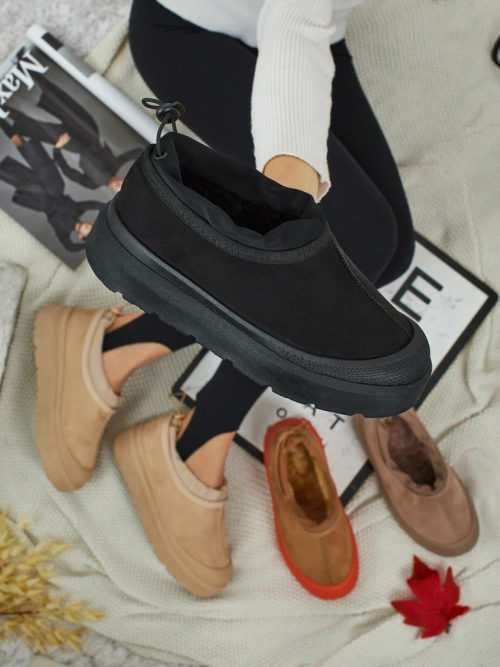 - Świetne damskie zimowe buty typu śniegowce na grubszej podeszwie typu platforma. Cholewka wykonana jest ze skóry ekologicznej zamszowej, środek ocieplony futerkiem. Idealna baza na zimę!