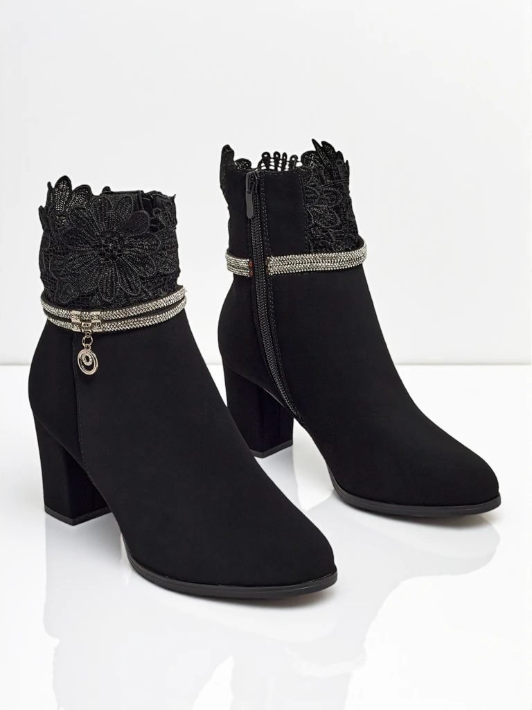 Dámské kotníkové boty z eko kůže na sloupku s krajkou Kastrelle