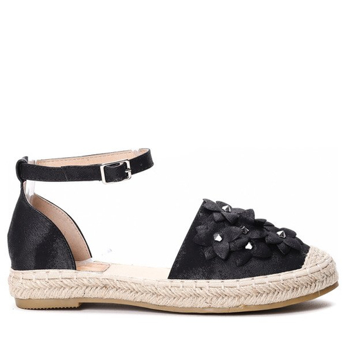 Czarne, odkryte espadryle z kwiatuszkami Nuena - Obuwie