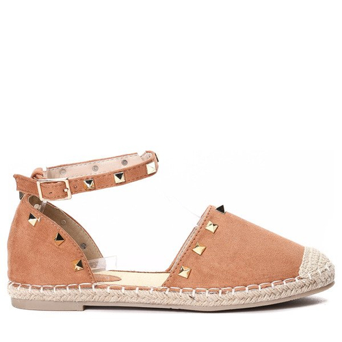 Brązowe, odkryte espadryle z ćwiekami Sinha - Obuwie