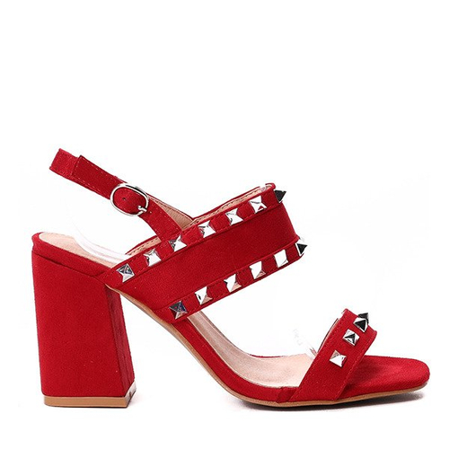 Czerwone sandały z ćwiekami na słupku Romena - Obuwie