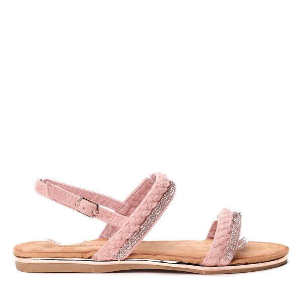 • Klasyczne sandały wykonane z ekologicznego zamszu. Obuwie zapinane na sprzączkę z boku. Na paseczkach cyrkonie. Podeszwa ozdobiona lustrzaną ozdobą. Idealnie nadadzą się do każdej letniej stylizacji!