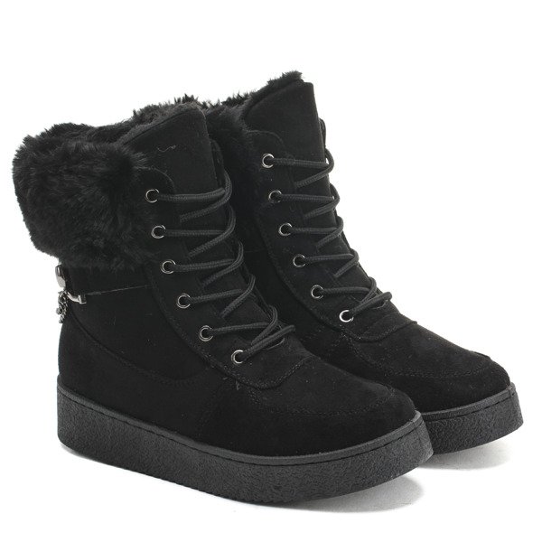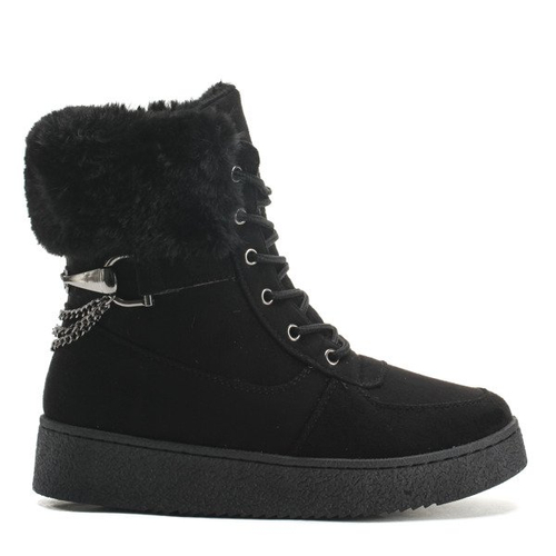 - Sznurowane botki a'la sportowe z grubym futerkiem od środka zapewnią Ci ciepło w chłodniejsze dni. Buty posiadają ozdobne futerko na wysokości cholewki oraz srebrną klamrę z delikatnym łańcuchem. Solidne wykonanie, bardzo wygodne i stabilne.