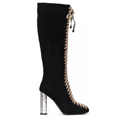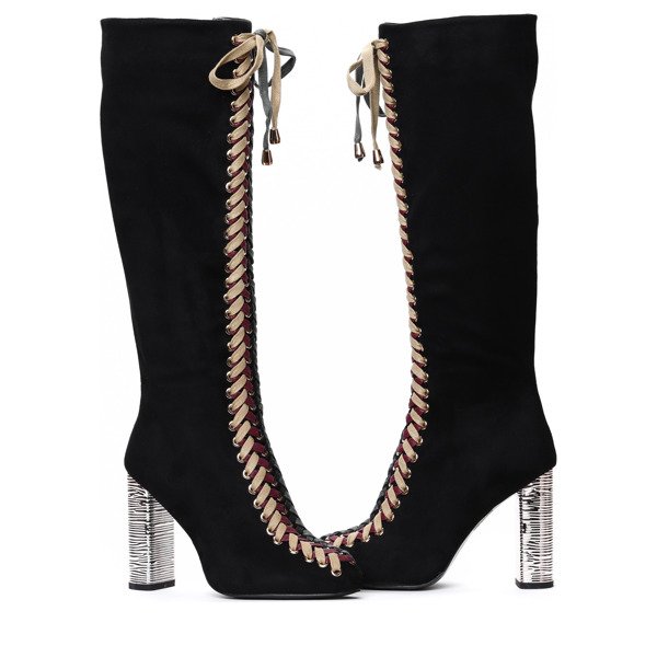 - Úžasné dlouhé boty izolované kožešinou. Tuhší svršek - má dlouhý zip a dekorativní vázání. Zdobený sloupek typu paty. Vysoký prst. Svršek je vyroben z ekologického semiše.