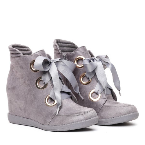 Szare sneakersy na krytym koturnie wiązane wstążką Andi- Obuwie