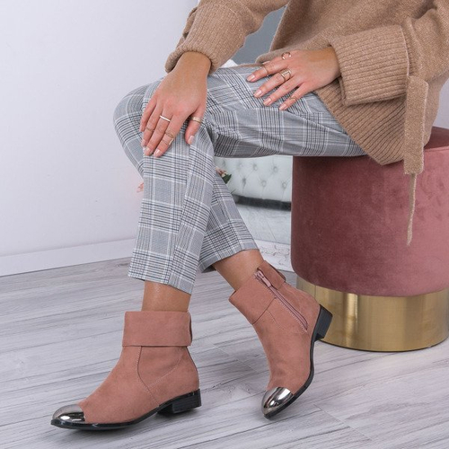 Różowe sztyblety z metalicznym noskiem Yoon- Obuwie