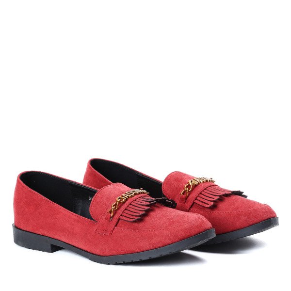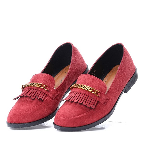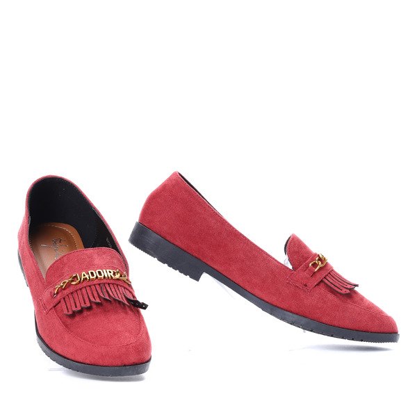 - Eleganckie mokasyny ze skóry ekologicznej zamszowej. Nosek z frędzelkami, zdobiony złotym łańcuszkiem z napisem "JADOIR". Model bardzo wygodny i solidnie wykonany.