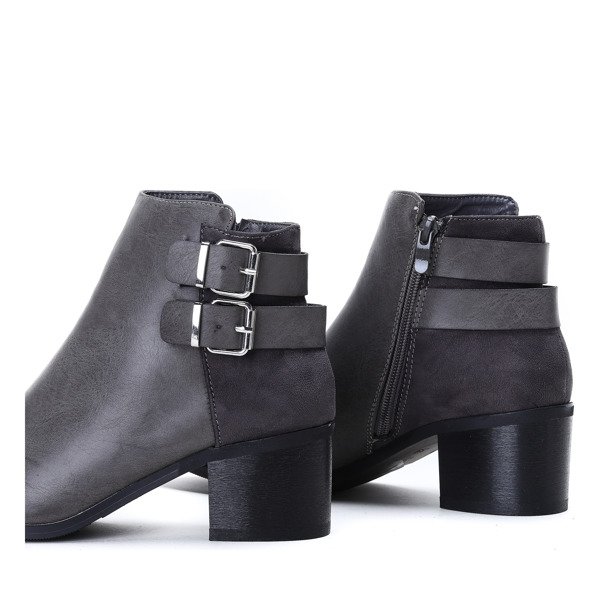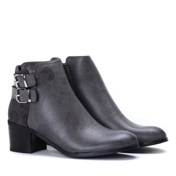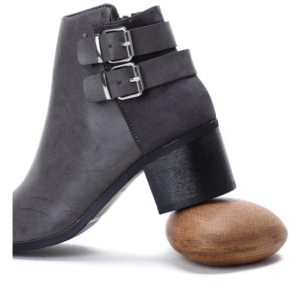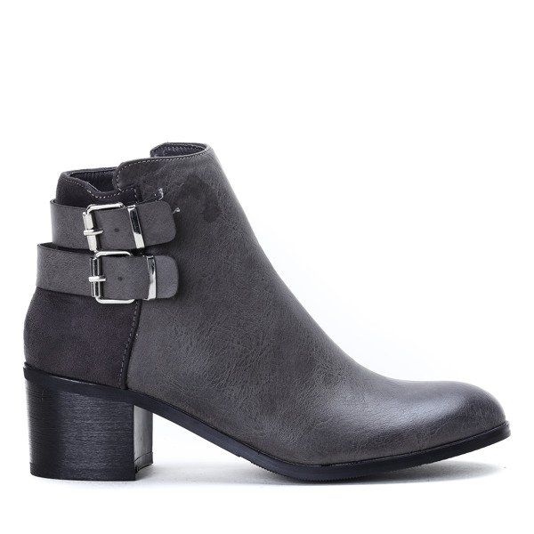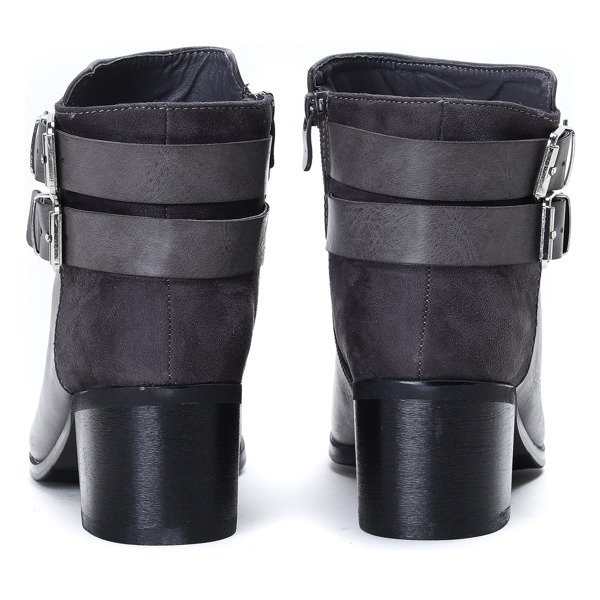 Botki na słupku z dwiema klamrami w kolorze szarym Raven - Obuwie