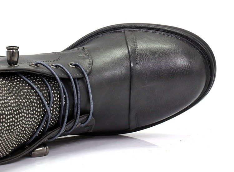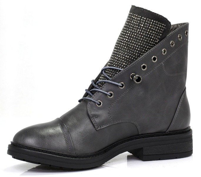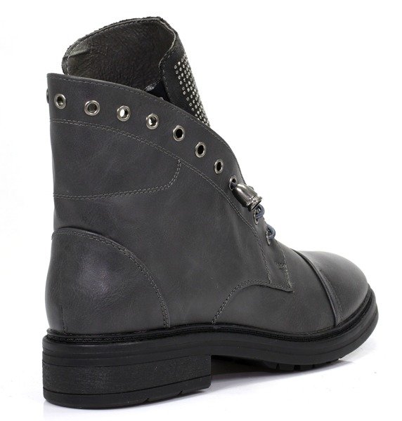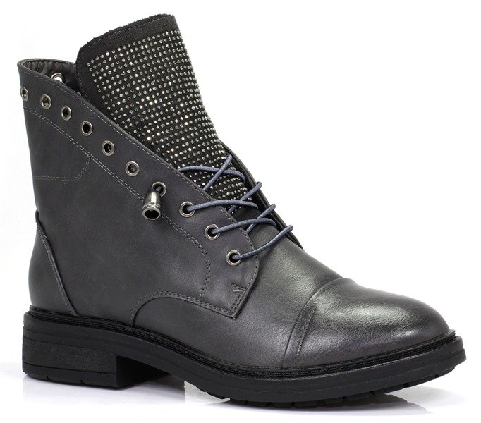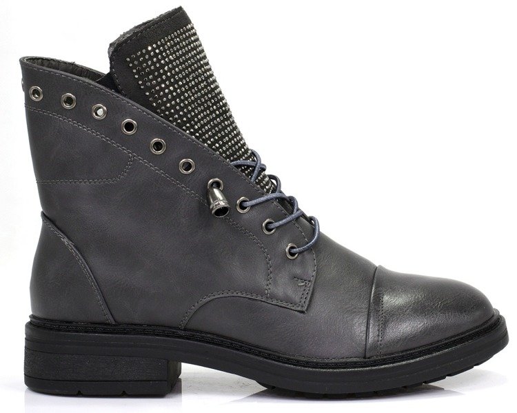 Szare, wiązane botki - Obuwie