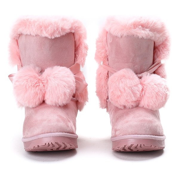 Růžové sněhové boty Bobo s bambulkami - Obuv