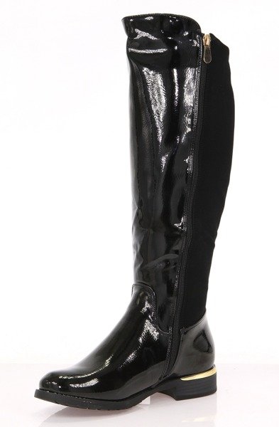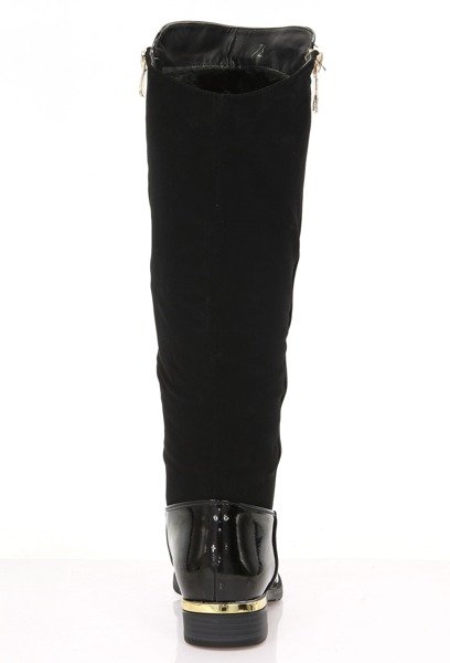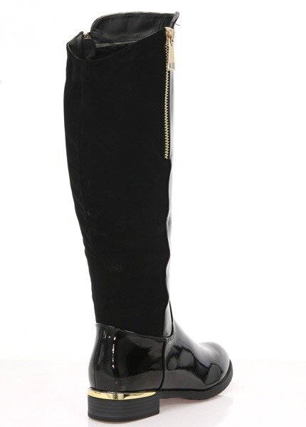 - Dlouhé boty inspirované klasickými mušketýry. Zadní část svršku z matného syntetického semiše. Dekorativní, zlatý zip a zlatá deska v patě vytvářejí elegantní design. Oteplování uvnitř.