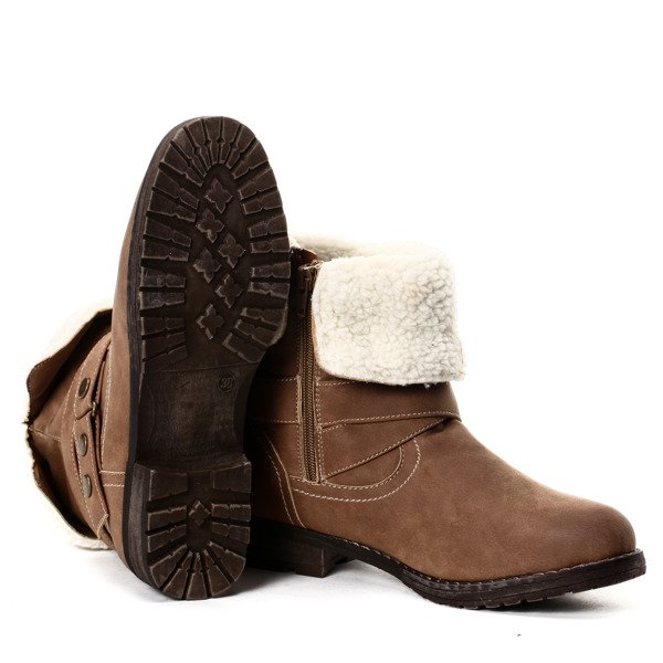 Ciemnobeżowe botki z kożuszkiem - Obuwie