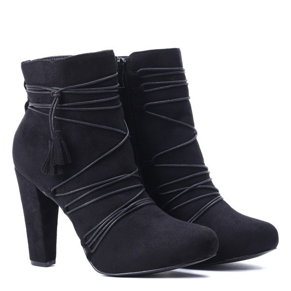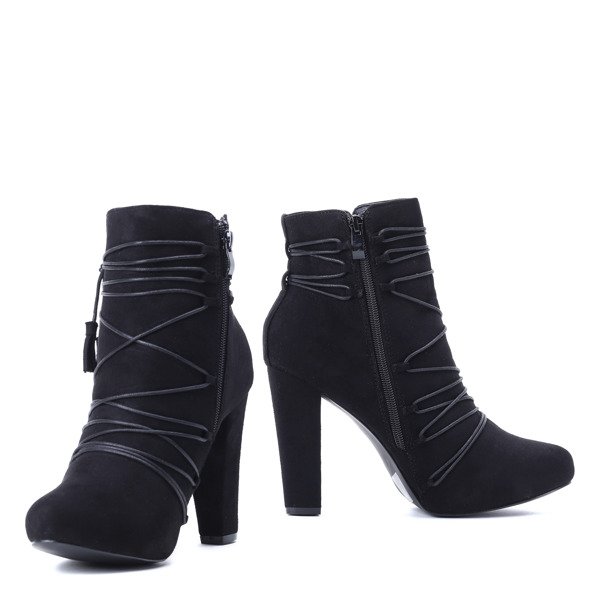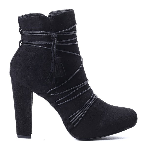 • Stylowe botki na słupku. Model ozdobiony wiązaniem i ozdobą przy kostce. Buty świetnie się prezentują. Mimo wysokich obcasów, są bardzo wygodne i stabilne. Pasują do wielu kobiecych stylizacji.