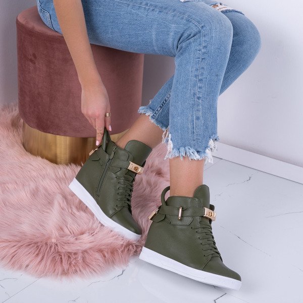 Zielone snaeakersy na krytym koturnie Singlea- Obuwie