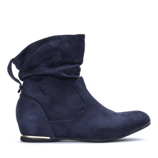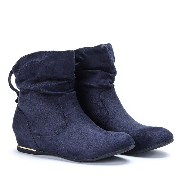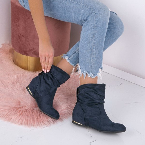 Granatowe botki na krytym koturnie Harmoni - Obuwie