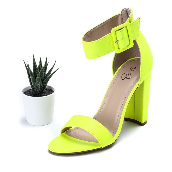 Żółte neonowe sandały na słupku Katiea - Obuwie