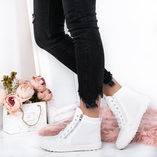- Klasyczne sneakersy z ekologicznej skórki. Wykończenie ażurowe, pod eko-skórą tkanina wzmacniająca. Ozdobny suwak z zewnątrz w kolorze srebrnym. Model na płaskiej podeszwie.