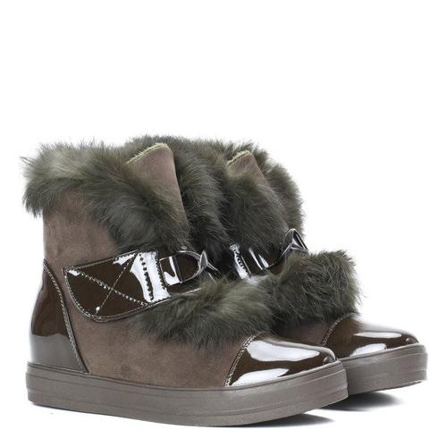 Ocieplane botki w kolorze khaki Fania - Obuwie