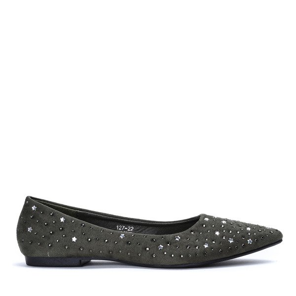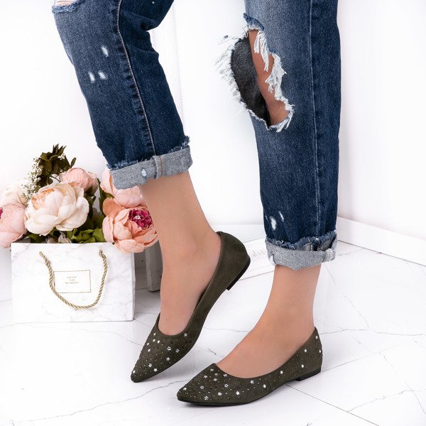 Ciemnozielone baleriny ze spiczastym noskiem Mariane - Obuwie