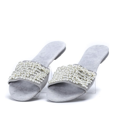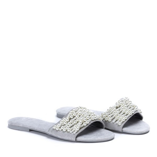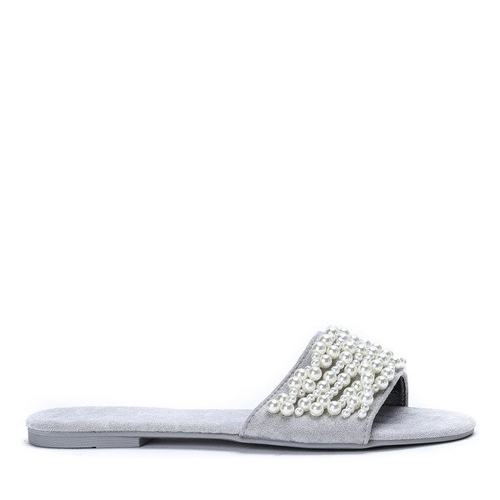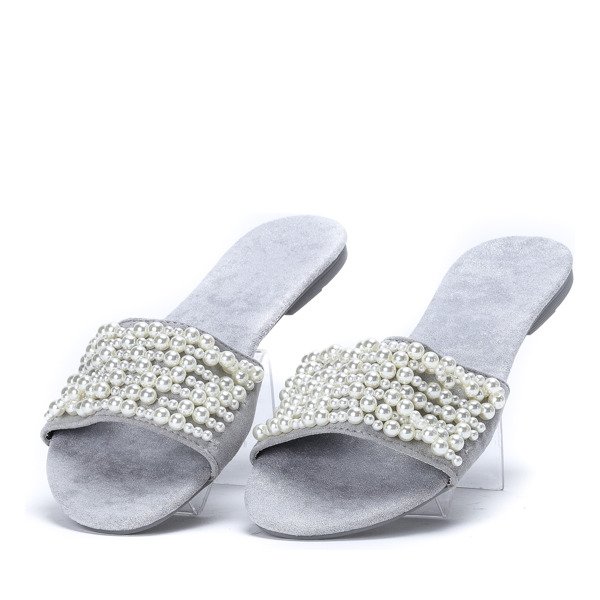 - Надзвичайно зручні шльопанці з еко замші з блискучою обробкою. Декоративні намистини на смужку. Ідеально підходить для теплих днів!