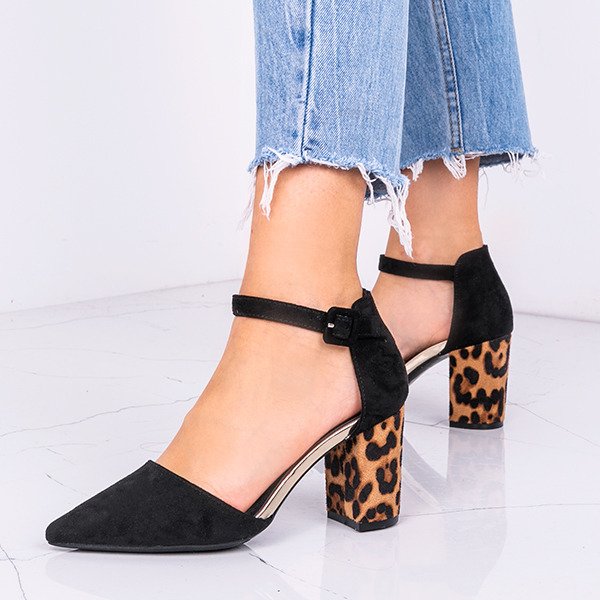 Чорні насоси на посту з леопардовим леопардом на підборах - Взуття 1