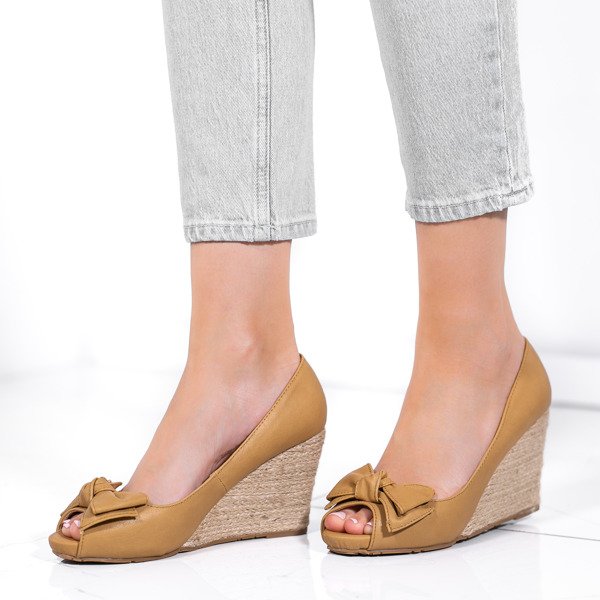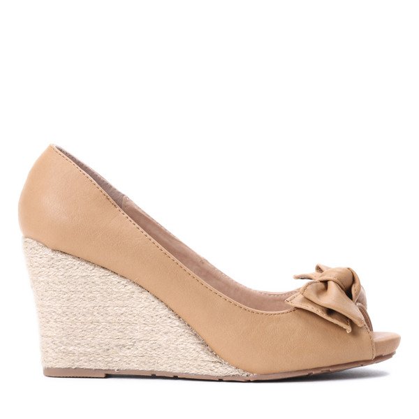 Ciemnobeżowe sandały na koturnie - Obuwie