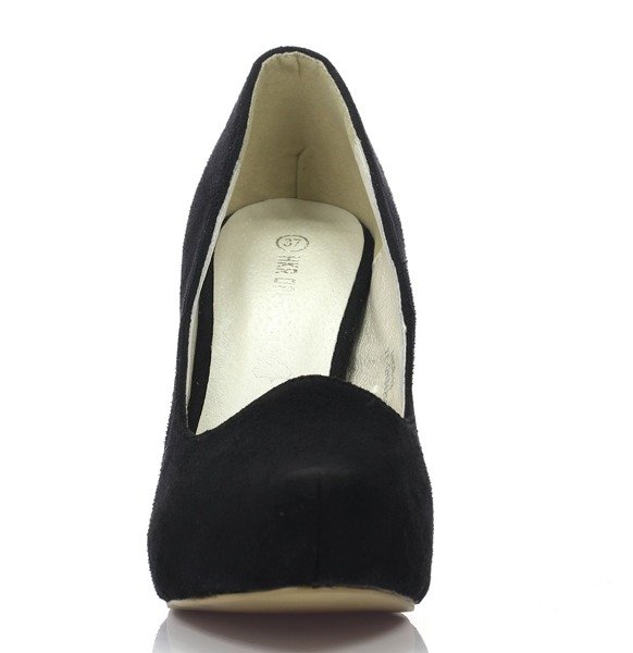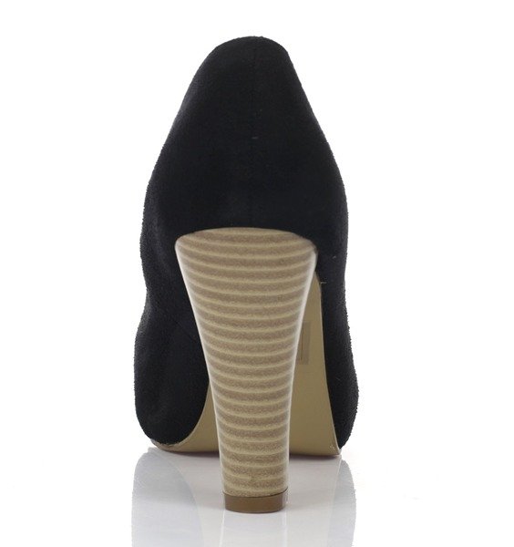 - Eleganckie czółenka wykonane z ekologicznego zamszu. Obcas oraz platforma pokryta skórą lakierowaną. Pięknie unoszą sylwetkę i dodają seksapilu. Idealne na wszelkie imprezy!