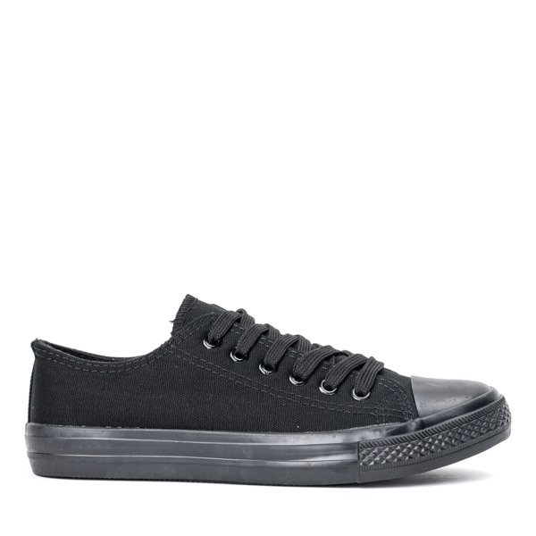 - Класичні кеди на плоскій підошві з чорної тканини. Представлене жіноче взуття має гумову підошву. Ідеально підходять для активних днів!