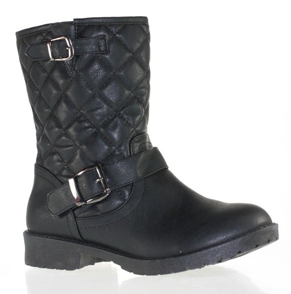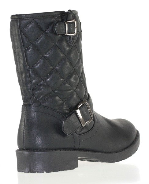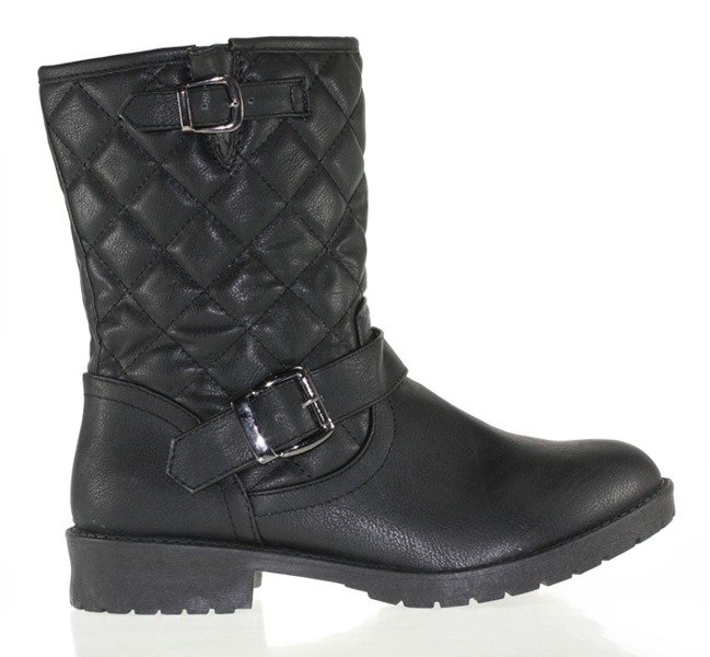 - Botki z ozdobnymi klamrami na niskim obcasie. Cholewka ozdobiona pikówką i klamrami. Solidnie wykonane i bardzo wygodne. W środku ocieplenie futerkiem. Nadają się do wielu odważnych stylizacji.