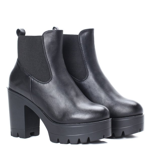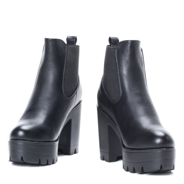 Czarne botki z eko-skóry - Obuwie
