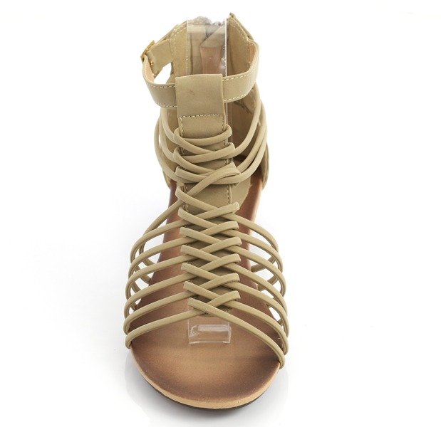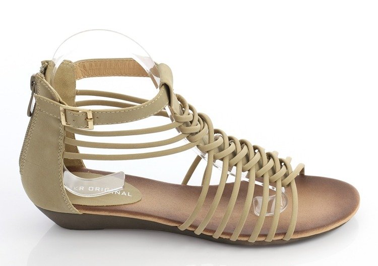 - Стильні босоніжки з екологічної шкіри. Взуття має пряжку. Ідеальна пропозиція для теплих днів. Примітка: виріб має сліди клею на матеріалі. [змінити]