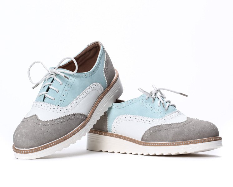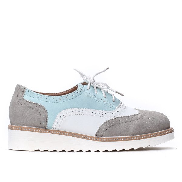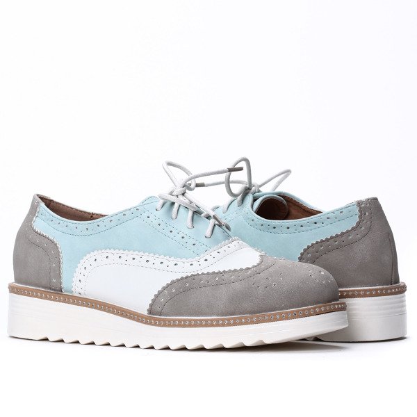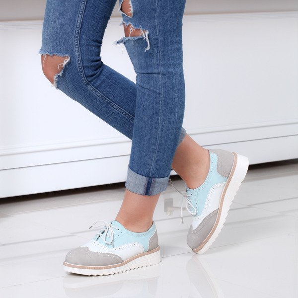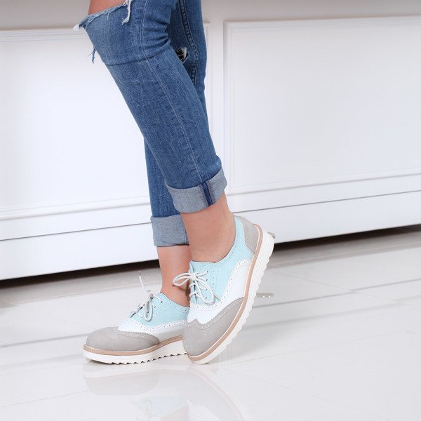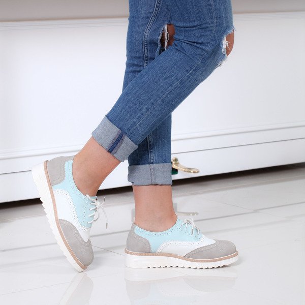 Wielokolorowe, sznurowane półbuty z błękitem - Obuwie
