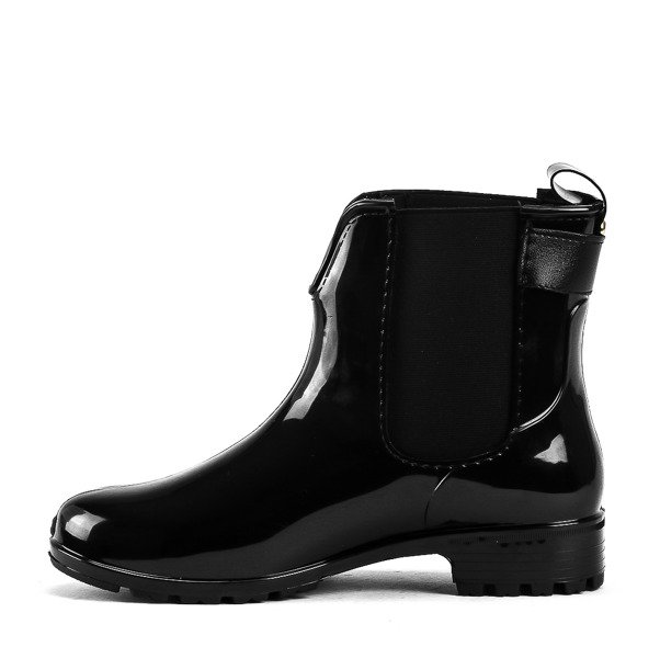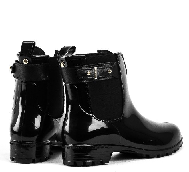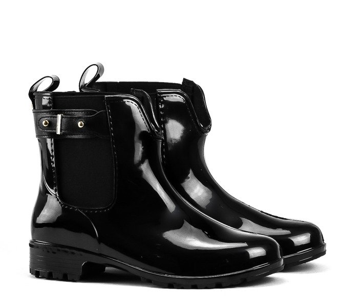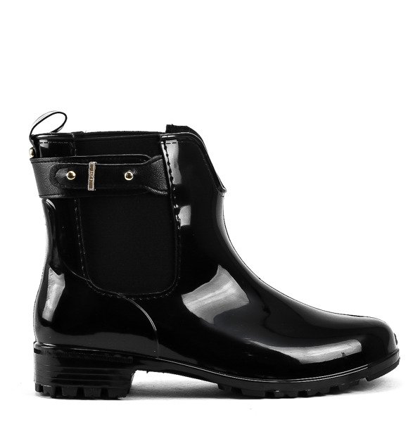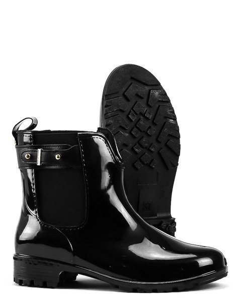 - Kalosze a'la botki wykonane z gumowego materiału. Posiadają elastyczne elementy cholewki oraz filcową wkładkę. Buty wsuwane, bardzo wygodne i stabilne!