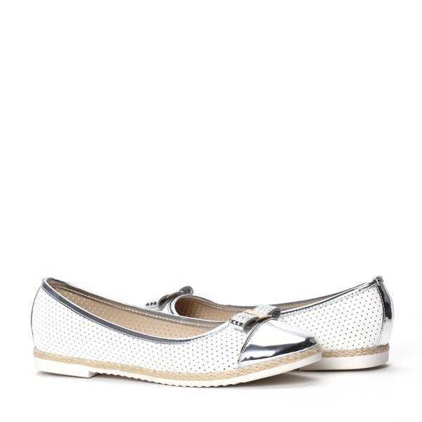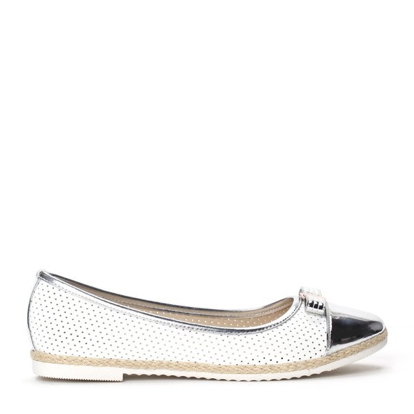 Srebrno-białe baleriny z lakierowanym noskiem - Obuwie