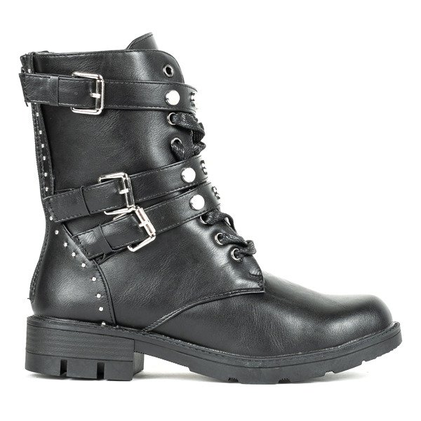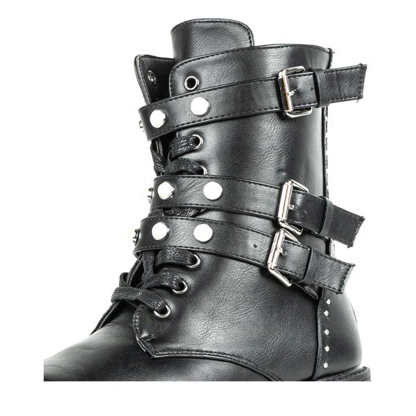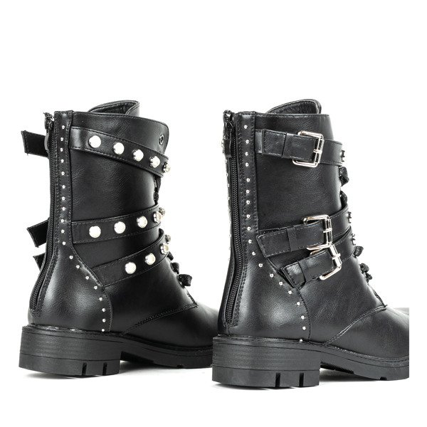 - Дивовижні стильні черевики на низьких підборах. Халявка виконана з еко-шкіри. Виріб прикрашений заклепками та перлами. Всередині черевики мають делікатне утеплення у вигляді поролону покритого тканиною.