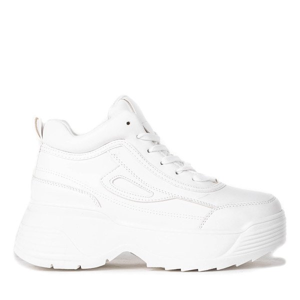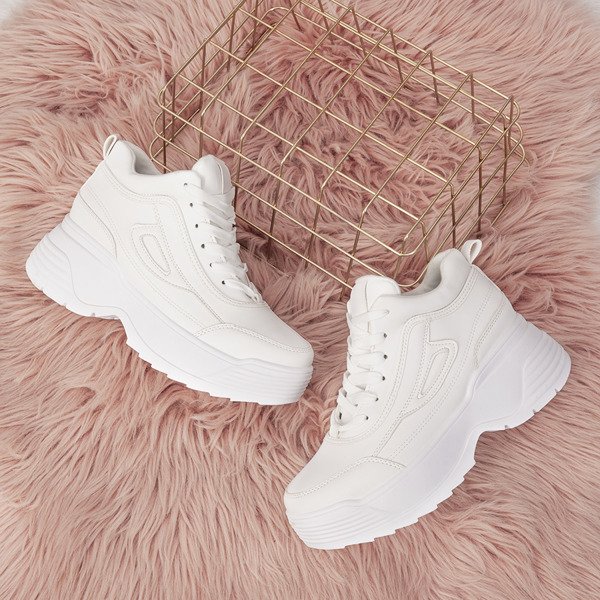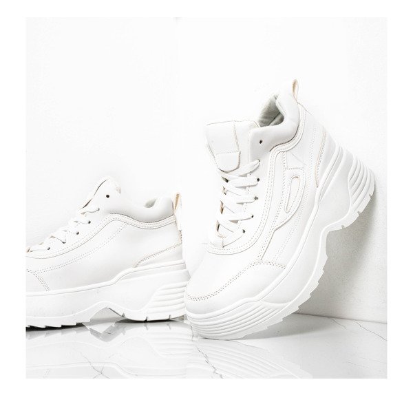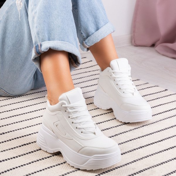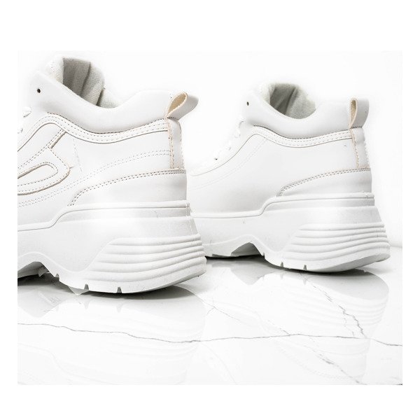 - Стильне спортивне взуття на масивній підошві. Матеріал верхньої частини - еко-шкіра білого кольору. Середина взуття вишита приємною на дотик тканиною. Представлене жіноче взуття - чудове доповнення до штанів!
