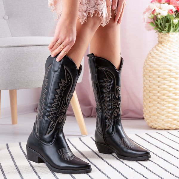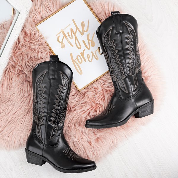 Чорні чоботи типу ковбойських до середини литки Cowboy - Взуття